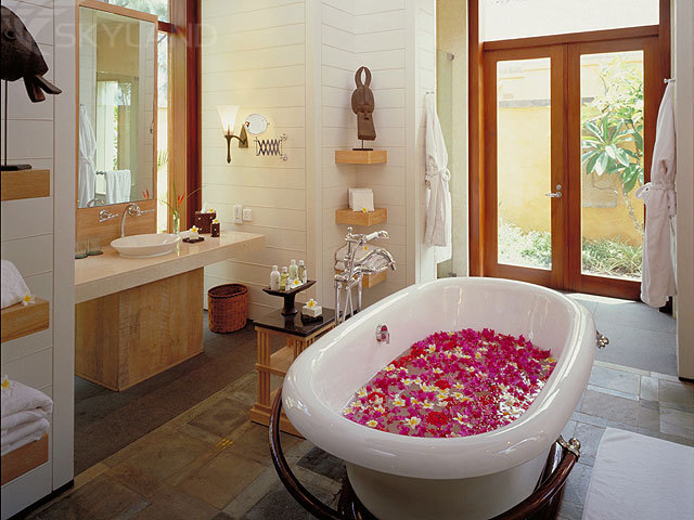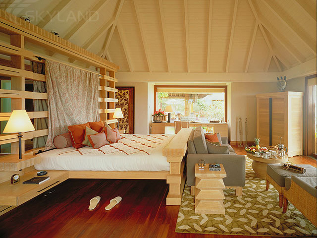48 Luxury Pavilions (70 кв.м) – коттеджи, в которых имеется: спальня, с кроватью размером king-size или двумя hollywood twin, гостиная, терраса (75 кв.м.) с видом на сад и океан.