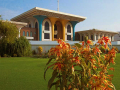 Перед фасадом дворца обустроен газон в форме полукруга, а с противоположной его стороны разбит небольшой спускающийся к морю парк.