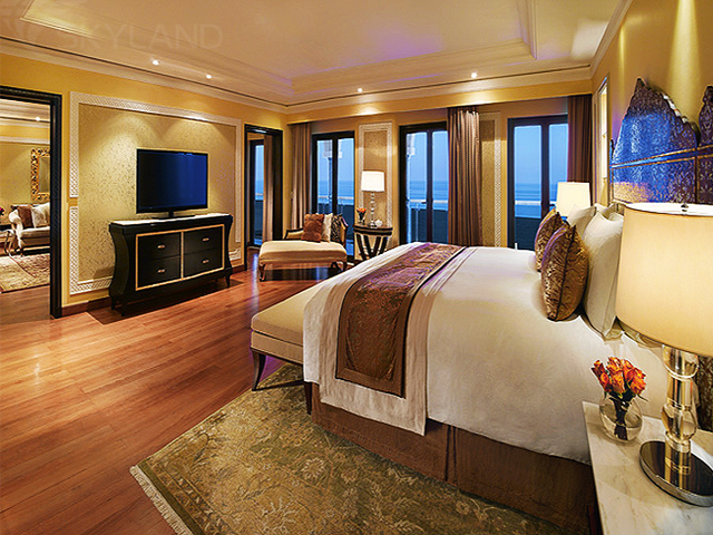 4 Presidential Sea View Suites (300 кв.м) – расположенные на 8 этаже просторные роскошные номера с 2 спальнями, большой гостиной со столовой зоной, кабинетом и библиотекой, а также полностью оборудованной кухней и балконом с видом на Оманский залив.