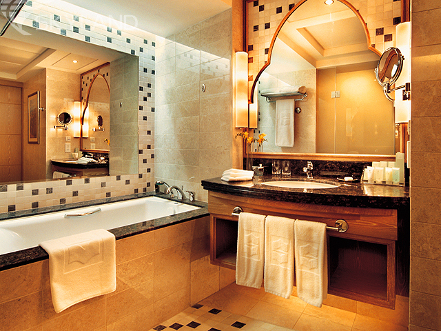 120 Al Bandar Deluxe Rooms (общая площадь 45 кв.м) - просторные однокомнатные номера со спальней, ванной комнатой с ванной и душевой кабиной и балконом (7 кв.м) с видом на сады и бассейн отеля, или с частичным видом на Залив.