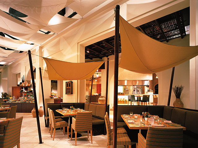 Al Tanoor – расположенный на первом этаже и открытый для завтраков, обедов и ужинов ресторан с открытой террасой. Здесь можно познакомиться с кулинарными традициями, характерными для кухни народов Аравийского полуострова. Натянутые над столиками тенты, традиционная керамика, ажурная резьба, использованные в дизайне цвета пустыни, гор и оазисов помогают проникнуться духом Омана. На «шведских столах» и в меню a la carte также представлены разнообразные блюда Средиземноморья, древней Персии, Индии и Турции. Повара готовят блюда в открытой кухне, так что вы можете наблюдать за увлекательным кулинарным спектаклем.