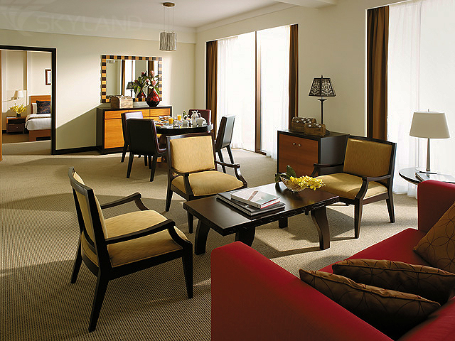 1 Al Waha Specialty Suite (общая площадь 117 кв.м) – самые просторные в отеле, роскошно декорированные номера со спальней, отдельной гостиной со столовой зоной, ванной комнатой с ванной и душевой кабиной и большим балконом или террасой (15 кв.м) с видом на ухоженные сады отеля и Оманский залив. В номерах: телевизор с плоским (ЖК) экраном, DVD-проигрыватель. Эти номера лучше всего подойдут для отдыхающих с семьей, или небольшой компанией, или для тех, кто не любит стеснять себя в пространстве.