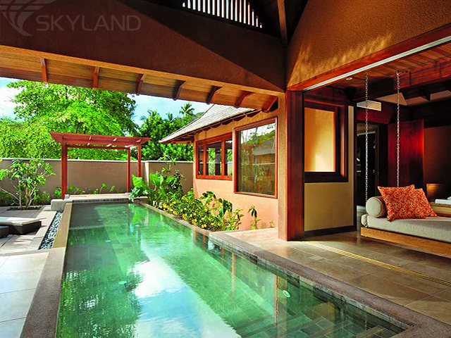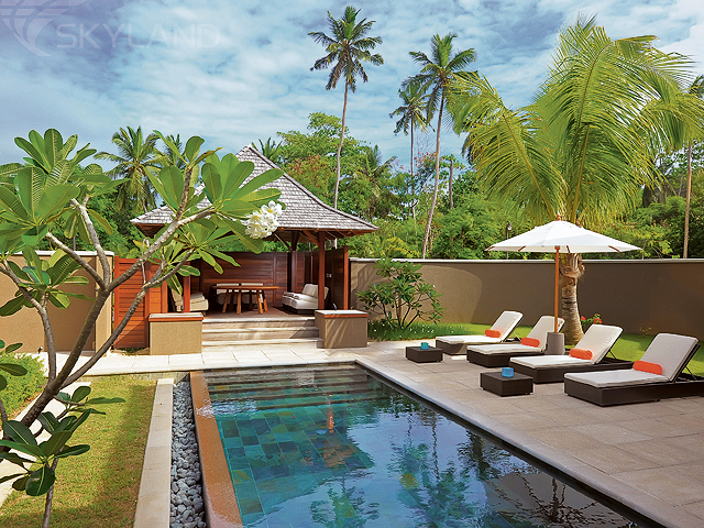 10 Spa Villas с персональным бассейном с одной спальней (330 кв.м) – виллы оборудованы просторными ванными комнатами, персональным бассейном, террасой для отдыха. Ванная комната, где помимо классической ванны, душа и туалета есть еще зона для процедур, является изюминкой этого типа вилл. Для релаксации и чтения предусмотрена зона медитации. Спальня, отделенная от основной части виллы, располагает к крепкому сну и обновлению сил. Максимальное размещение - 2 взрослых.