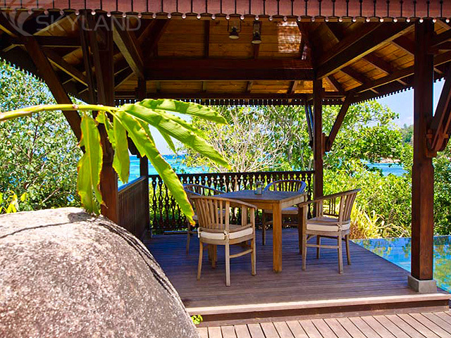 После прибытия в Международный аэропорт на острове Маэ гостей отеля ждет 10-минутная поездка на машине до причала, а оттуда - 15-минутная прогулка на катере до отеля, который занимает всю территорию острова. Этот чудесный гранитный островок, возвышающийся на 26 метров над уровнем моря, может похвастаться несколькими великолепными пляжами, живописными бухтами, одними из лучших мест для купания и сноркелинга на Сейшелах.