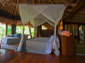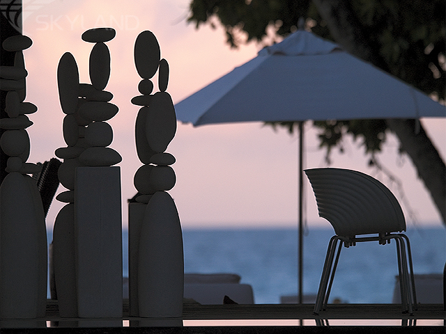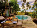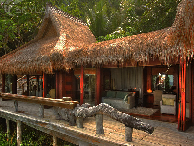 Чтобы максимально вписать виллы в естественный ландшафт острова, каждую проектировали индивидуально. При строительстве и отделке использовались только природные материалы: разнообразные местные породы дерева, местный камень, стекло… Все это в комплексе создало теплую домашнюю обстановку, обеспечивающую гостям отеля редкую возможность полной релаксации и уединения.