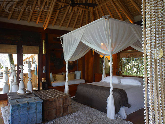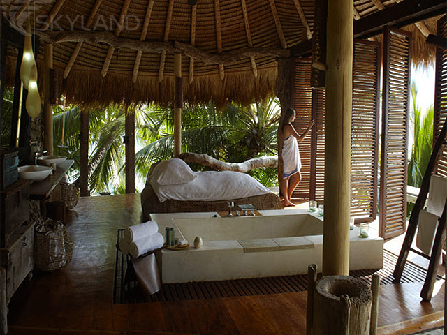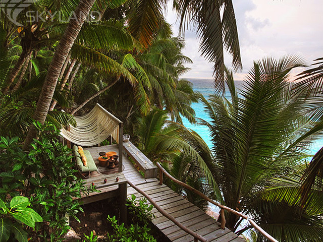 Для того чтобы гости этого, не имеющего аналогов на Сейшелах, островного отеля-заповедника в полной мере насладились отдыхом в неповторимой атмосфере приватности, комфорта и утонченной простоты создатели отеля, дизайнеры и архитекторы с Сейшел и из Южной Африки спроектировали 11 просторных, крытых тростноком вилл, площадью 450 кв. м. каждая. В дизайне отеля угадываются черты южно-африканских сафари-лоджей и бунгало в стиле "Робинзона Крузо".
