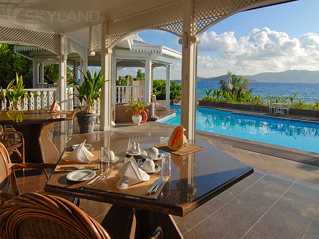 В здании The Pavillion расположен элегантный ресторан с открытой террасой. Здесь шеф-повар предложит гостям изысканные блюда креольской, азиатской и восточной кухни. В их приготовлении используются самые свежие продукты, часть которых выращена здесь же, на острове, или закуплена у местных фермеров. А рыбу и морепродукты закупаются у рыбаков Маэ и Праслина.