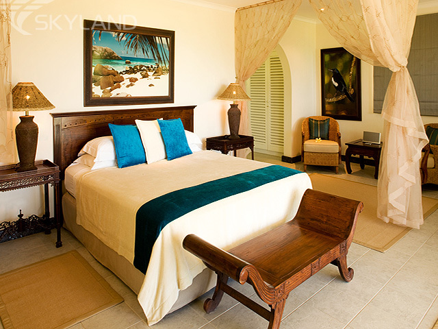 Созданный в истинно креольском стиле и укрытый в тени тропического леса очаровательный комплекс отеля состоит из Павильона с рестораном, баром, гостиной, библиотекой и открытым бассейном, чудесного спа-центра и всего 4 комфортабельных вилл, уединенно расположившихся вдоль великолепного чистейшего пляжа может единовременно принять лишь 8 гостей. Что делает остров идеальным для любителей эксклюзивного уединенного спокойного отдыха и индивидуального сервиса, а также исключительным уголком земного шара для незабываемого медового месяца.