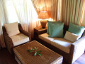 Hillside Villas (58 кв.м, + терраса 22 кв.м) – виллы со спальней (кровать king-size под балдахином, туалетный столик и гостиная зона с креслом, софой и журнальным столиком), ванной комнатой открытого плана с гардеробной комнатой, ванной для двоих, 2 раковинами, биде и душем на открытом воздухе. Большие раздвижные двери ведут на просторную террасу-гостиную.