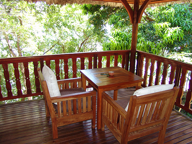 Hideaway Villas (58 кв.м, + терраса 22 кв.м и частный садик 20 кв.м) – виллы со спальней (кровать king-size под балдахином, туалетный столик и гостиная зона с креслом, софой и журнальным столиком), ванной комнатой открытого плана с гардеробной комнатой, ванной для двоих, 2 раковинами, биде и душем на открытом воздухе. Большие раздвижные двери ведут на просторную террасу-гостиную. Дополнительно есть частный садик с лежаками.