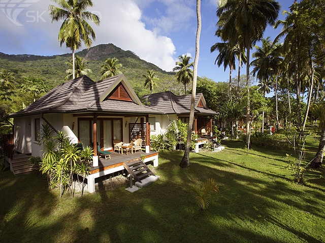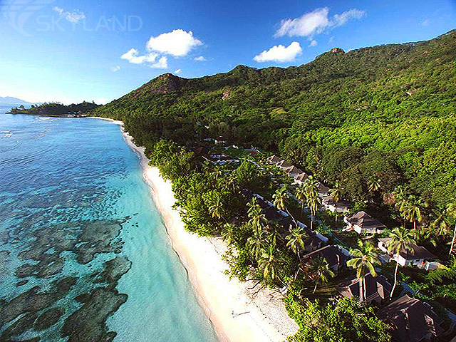 Укрытые густой тропической зеленью и высокими пальмами роскошные виллы отеля - образец сейшельской элегантности и изысканности, расположились на прекрасном 2-километровом пляже, вдоль восточного побережья Силуэта, у подножья величественной горы Даубан, названной так в честь первых владельцев острова.