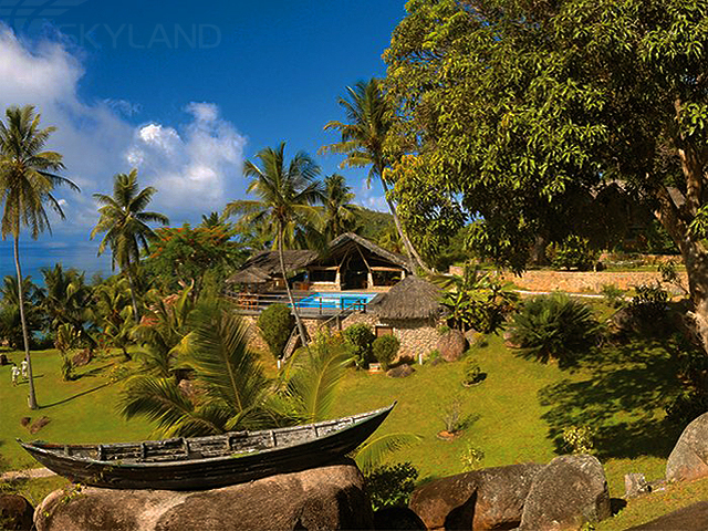 Построенные из редких пород деревьев, просторные бунгало и виллы отеля утопают в зелени пальмовых деревьев, экзотических орхидей и красочных тропических цветов, и хотя в отеле всего 9 номеров, все они оборудованы по последнему слову техники, с элегантными интерьерами, сочетающими современный дизайн и традиции Сейшел. К услугам гостей: открытый бассейн, прекрасные возможности для занятий водными видами спорта, тренажерный зал, джакузи, спа-центр, магазин сувениров, разнообразные и вкусные блюда ресторана Chateau de Feuilles, морские прогулки, а также экскурсии по о. Праслин и близлежащим островам, включая романтический ужин на необитаемом острове.