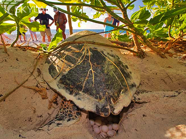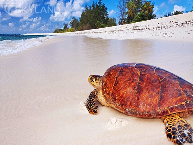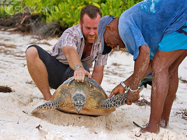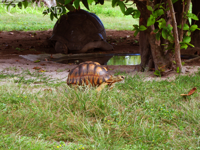 В прибрежных водах и на пляжах острова можно встретить черепах Хоксбила и зеленых черепах, которые выводят здесь свое потомство, а на самом острове живет сообщество лучистых черепах и самая большая колония гигантских сухопутных черепах, возраст самой известной из которых – более 150 лет, а весит она около 300 кг. Легендарная черепаха, названная поэтическим именем «Эсмиральда», была одной из двух, завезенных в 1967 году на остров представителей этого исчезающего вида. Не смотря на ее женское имя, злые языки говорят, что в круге жизни ей отведена роль мужчины.