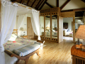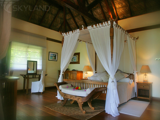 Для размещения гостей на острове построены 3 расположенные отдельно друг от друга в окружении ухоженного сада, двухэтажные виллы (165 кв.м) с 2 спальнями, просторной террасой, собственным бассейном и солярием, оборудованным лежаками и зонтиками, а также огромный частный дом с 3 спальнями. Виллы и дом оформлены в креольском стиле. Дизайн каждого из зданий утончен, индивидуален и подчинен определенной тематике.