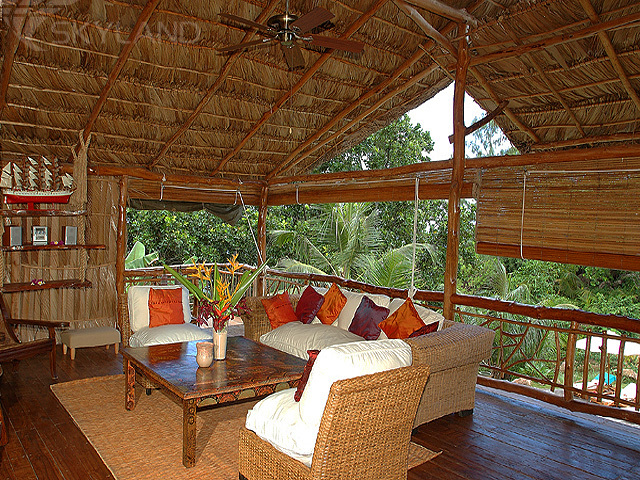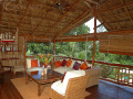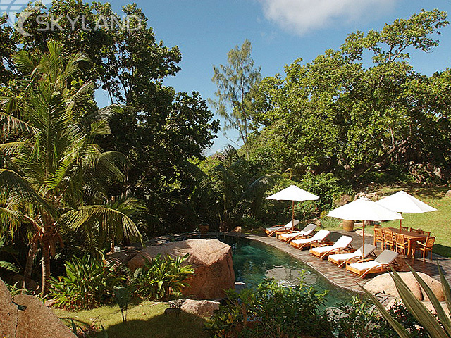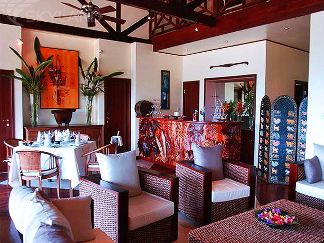 Takamaka Private House (300 кв.м) – двухэтажный частный дом «Такамака» с собственный ухоженным садом, большим бассейном, оборудованным лежаками и зонтиками солярием, огромной террасой, гостиной открытого плана со столовой зоной, и кухней, названный именем одного из самых величественных и живописных тропических деревьев, расположен выше всех по склону горы, в отдалении от других вилл. В доме, который своей тыльной частью как бы врос в тело горы, есть 3 спальни: одна - с кроватью king-size под балдахином и ванной комнатой, в которой есть джакузи, душевая кабина и туалет, а также две другие (гостевые) спальни оборудованы 2 отдельными кроватями twin и ванными комнатами с ванной, душем и туалетом. В остальном, дом оборудован также как и виллы.