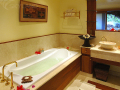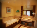в каждой спальне есть отделанная мрамором и дорогими породами дерева просторная ванная комната с ванной-джакузи и душем на свежем воздухе, туалет, фен;