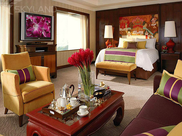 7 Deluxe One-Bedroom Suites (126 кв.м) — расположенные на этажах с 6 по 8 роскошные номера с видом на гольф-поле в Royal Bangkok Sports Club, состоящие из фойе, просторной гостиной с обеденной зоной на 6 человек и баром, спальни, роскошной ванной комнаты и гостевой туалетной комнаты. Максимальное размещение – 3 взрослых или 2 взрослых и 2 ребенка.