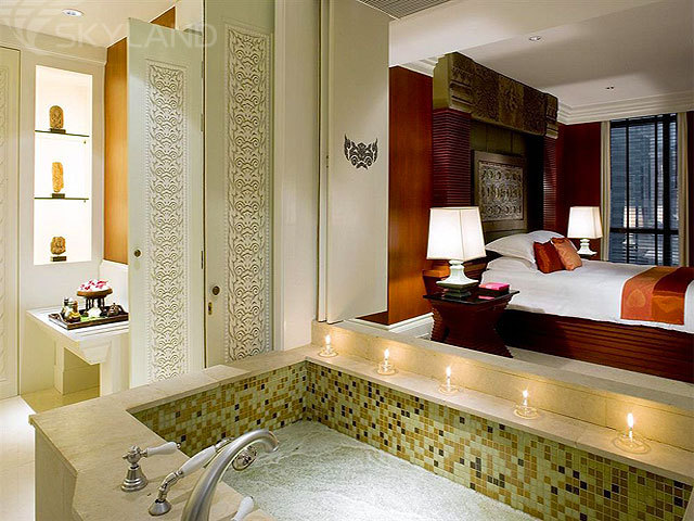Ratanakosin Suite (350 кв.м) – эксклюзивный роскошный тематический номер, декорированный в стиле эпохи короля Рамы I, основоположника династии Чакри, и оборудованный с королевской роскошью, украшенный великолепными шелками и изысканными тайскими артефактами. Номер включает 2 спальни (главная – с кроватью king-size, гостиной зоной, гардеробной, роскошной ванной комнатой с глубокой отдельно стоящей ванной, душевой и двойной раковиной, а также комнатой с тренажерами; вторая – с 2 кроватями twin, гардеробной комнатой и ванной комнатой с ванной и душевой кабиной), просторную гостиную с мягкими диванами и креслами (на 11 персон), барной стойкой и роялем; рабочий кабинет с рабочим столом (факс и копир), диваном; столовую с обеденным столом на 12 персон, которая может быть использована для проведения деловых встреч; кладовую и гостевую туалетную комнату. Дополнительно в номере – телевизор с ЖК экраном (диагональ127 см), DVD система и бесплатный беспроводной (Wi-Fi) доступ в Интернет.