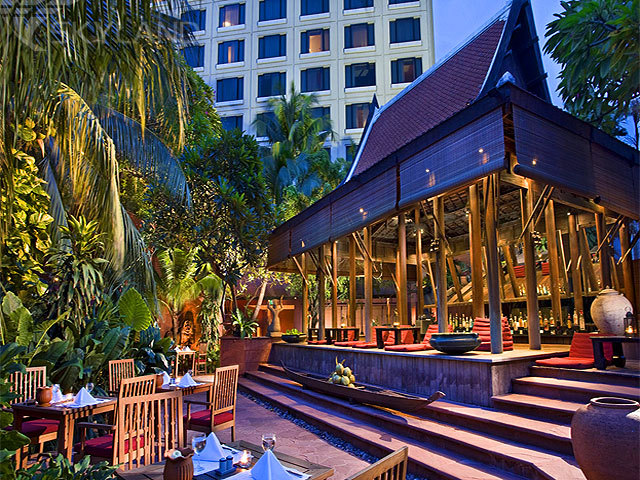 The Sala – расположенный на третьем этаже, у кромки бассейна свободной формы открытый ресторан-бистро в традиционно тайском стиле, окруженный уютным тропическим садом – оазис тишины и спокойствия в центре бурлящего города. Здесь гостям предлагается меню á la carte из легких закусок в течение дня и барбекю по вечерам (только в сухой сезон).