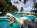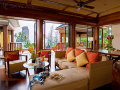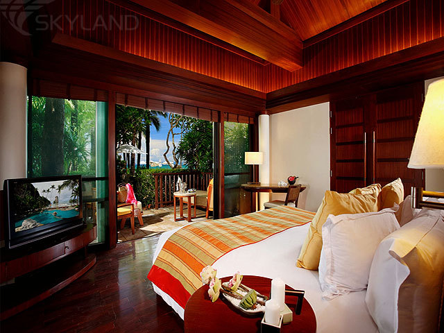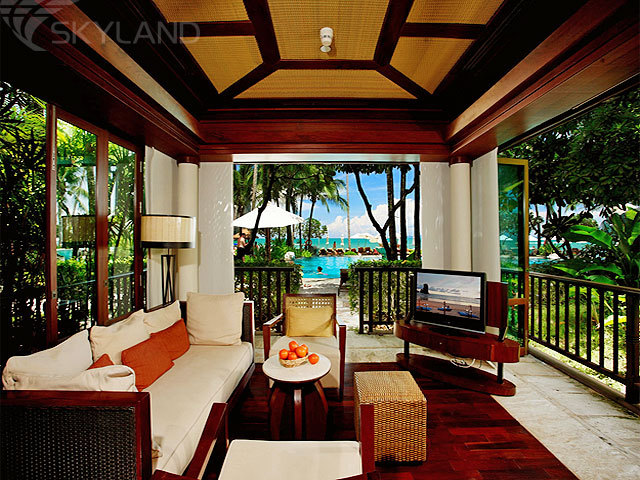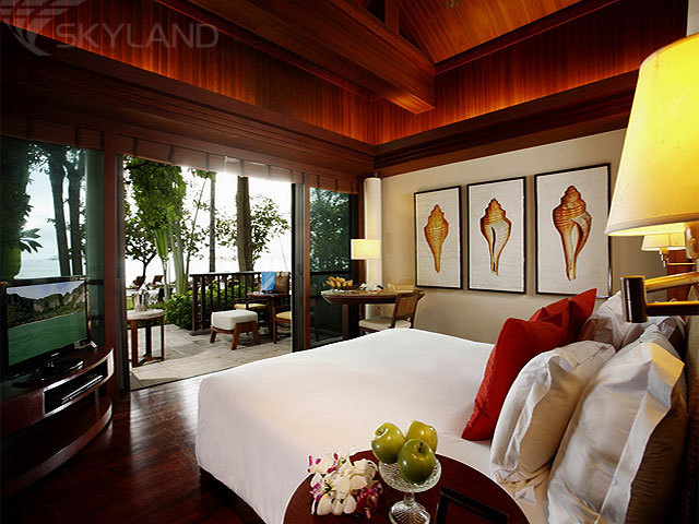 4 One Bedroom Beachfront Villas (общая площадь 96 кв.м) – индивидуальные виллы с прямым выходом к главному бассейну с видом на Андаманское море. Виллы состоят из спальни (56 кв.м) с кроватью king-size, отдельной гостиной с обеденной зоной, ванной комнаты с ванной и душевой кабиной, просторной меблированной террасы (40 кв.м) с видом на бассейн и пляж. Дополнительно: CD/DVD-проигрыватель, второй телевизор с ЖК экраном, коллекция фильмов. Максимальное размещение: 3 взрослых, или 2 взрослых и 1 ребенок. Гостям номера предоставляются дополнительные клубные привилегии и услуги Club Lounge.