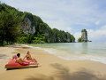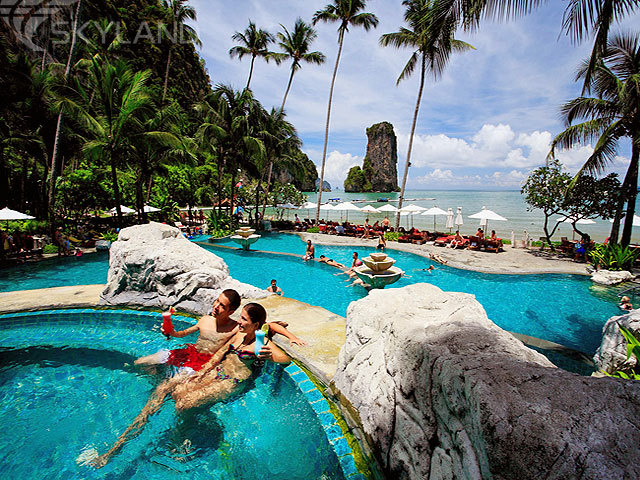 Построенный в 2005 г. вдоль 500-метровой линии чудесного частного пляжа отель ведущей сети отелей Таиланда приятно удивит даже взыскательных путешественников, стильным декором, просторными (от 72 кв.м) номерами, отличной кухней, разнообразием процедур великолепного спа-центра SPA Cenvaree, отмеченного в 2009 году престижной наградой Asia Best New Spa, большим выбором водных видов спорта и других спортивных развлечений. В детском клубе и клубе для подростков предлагаются развлекательные и развивающие программы для детей разных возрастов, а в ресторанах и барах отеля гостей ждут изысканные блюда, безукоризненный сервис и приятная атмосфера. Кроме того, утопающий в тропической зелени Centara Grand Beach Resort & Villas Krabi может похвастаться одним из самых живописных видов на всемирно известные острова и причудливые скалы провинции Краби, и одинаково подойдет для романтических каникул, активного отдыха и отдыха с семьей.