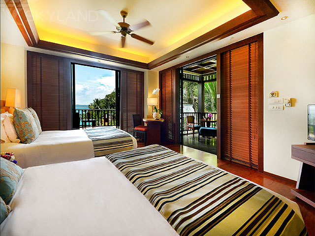 35 Deluxe Ocean Facing Rooms (общая площадь 72 кв.м) – однокомнатные номера со спальней (47 кв.м) с кроватью king-size или 2 кроватями double, гостиной зоной, ванной комнатой с ванной и душевой кабиной, и балконом (25 кв.м) с зоной отдыха, обеденным столиком и видом на Андаманское море. Максимальное размещение: 2 взрослых и 1 ребенок (кровать king-size); 3 взрослых, или 2 взрослых и 3 ребенка (2 кроватями double).