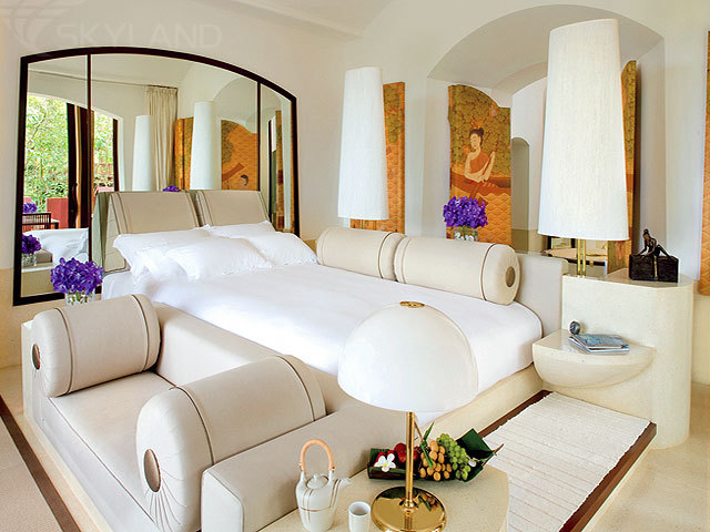Как и все номера отеля, виллы оформлены в изящном тайском стиле и наполнены традиционной гостеприимностью. Отделка просторных гардеробных, равно как и пляжные принадлежности и постельное бельё на огромных кроватях, выполнены только из натурального хлопа и лучшего тайского шелка.