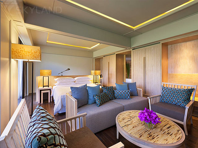 спальня с кроватью king-size или двумя кроватями queen и небольшой зоной отдыха с софой;