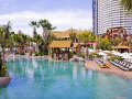 Этот роскошный пятизвездочный отель был задуман как первый по-настоящему тематический отель в Таиланде, и его изюминкой стал утопающий в зелени великолепного тропического сада аквапарк «Затерянный Мир», с плавательными бассейнами, детским бассейном, «бескрайним» бассейном, большим бассейном-лагуной, водопадами, водными горками, «ленивой рекой» и другими аттракционами. Гости отеля могут плескаться в многочисленных бассейнах и развлекаться в аквапарке абсолютно бесплатно. Потрясающий 18-этажный комплекс отеля предлагает 555 просторных стильных номеров и сьютов с балконами и видом на Сиамский залив. Еще одна немаловажная отличительная черта Centara Grand Mirage Beach Resort Pattaya - прямой выход к 230-метровому частному пляжу и обширный парк с яркой экзотической растительностью, чем не могут похвастаться другие отели класса люкс в Паттайе.