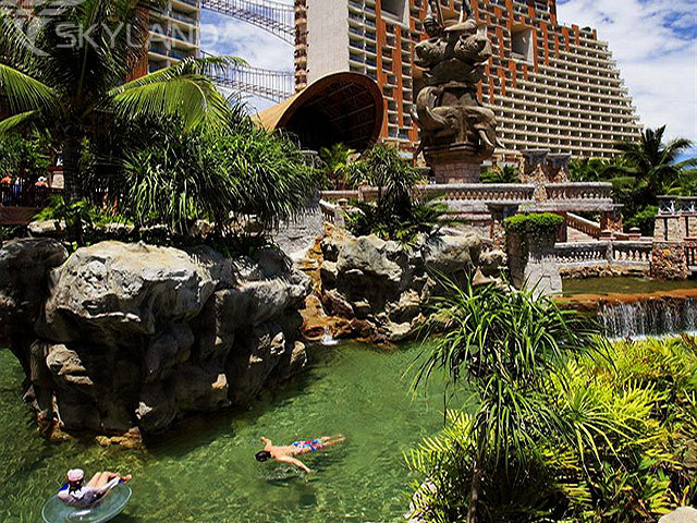 обширный тематический аквапарк «Затерянный Мир» с плавательными бассейнами, детским бассейном, «бескрайним» бассейном, большим бассейном-лагуной, водопадами, водными горками, «ленивой рекой» и другими аттракционами (для гостей отеля – бесплатно);