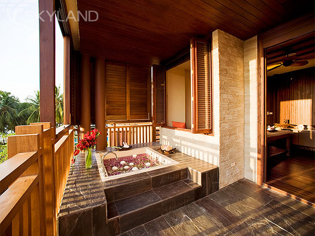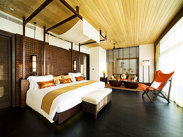 160 Deluxe Ocean Facing Rooms (42 кв.м) – просторные однокомнатные номера с видом на Сиамский залив и сады отеля, балконом или террасой (4 кв.м), спальней с кроватью king-size, ванной комнатой с ливневым душем. Максимальное размещение – 3 взрослых, или 2 взрослых и 1 ребенок.
