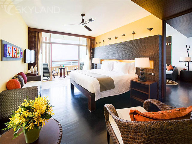 15 Deluxe Family Residences - King + bunk bed (75-78 кв.м) – просторные семейные номера с видом на Сиамский залив, сады отеля и Паттайю. В номерах просторная меблированная терраса (26 кв.м), 2 спальни (главная – с кроватью king-size, детская – с двухъярусной кроватью), ванная комната с ванной и ливневым душем. В номерах дополнительно: DVD-проигрыватель. Максимальное размещение – 2 взрослых и 3 ребенка.