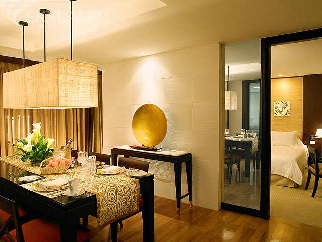 3 Two-Bedroom Suites (120 кв.м) – угловые номера с балконом, отдельной гостиной и двумя спальнями (в одной - кровать king-size, во второй - две кровати twin) и просторной ванной комнатой. В номерах дополнительно: второй телевизор, DVD-проигрыватель, комфортабельная постель и пуховые подушки, меню подушек, бесплатный высокоскоростной доступ в Интернет в номере. Гостям этих номеров предоставляется дополнительные услуги и доступ в клубную гостиную Dusit Club Lounge.