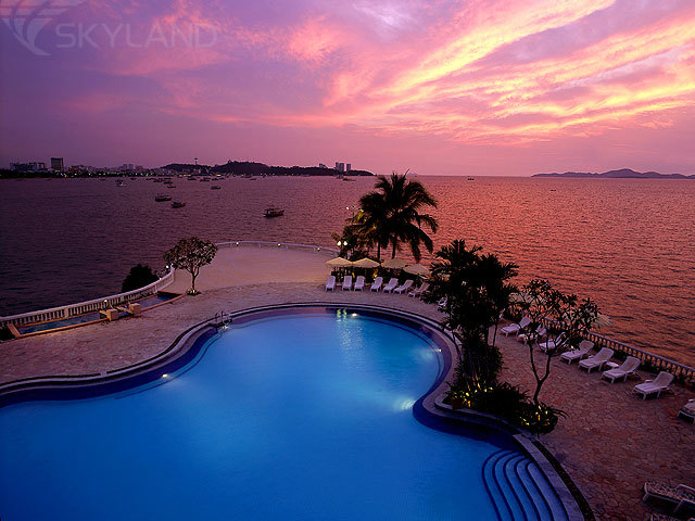 Комплекс отеля – это состоящее из трех корпусов, объединенных единым лобби, современное белоснежное 8-этажное здание отеля, прекрасный бассейн-лагуна и плавательный бассейн, великолепный спа-центр, расположенный в ухоженном тропическом саду и включающий 7 процедурных павильонов с душами, ванными, парными, саунами, где предлагается широкий спектр различных видов массажа и спа-процедур, 3 отличных ресторана (включая один из лучших в Паттайе итальянский ресторан), 2 бара, гостиная и кондитерская, фитнес-центр, теннисные корты, детский клуб, 2 оборудованных живописных пляжа и великолепный конференц-центр. Элегантные интерьеры просторных номеров и сьютов с мягким ковровым покрытием выполнены в теплых тонах, обставлены изящной мебелью, украшены шелковыми подушками и изысканными элементами декора в тайских традициях. А из больших панорамных окон номеров открывается прекрасный вид на Сиамский залив и бухту Паттайя.