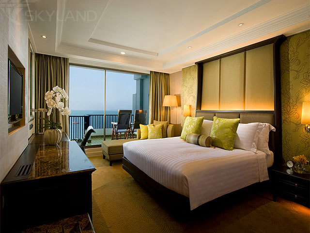 127 Deluxe Sea View Rooms (40 кв.м) – просторные однокомнатные номера с балконом с панорамным видом на Сиамский залив и бухту Паттайя, спальней с кроватью king-size или двумя кроватями twin, небольшой гостиной зоной с рабочим столом и ванной комнатой с ванной.