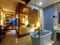 16 Regency Suites – Оne Bedroom (100,5 кв.м) – роскошные номера с панорамным видом на курорт и Сиамский залив, большим оборудованным 2 шезлонгами балконом (33,6 м), спальней с кроватью king-size, отдельной гостиной со столовой зоной, отделанной мрамором ванной комнатой, с объемной ванной, душевой кабиной и двумя раковинами. В номерах дополнительно: гостевой туалет.