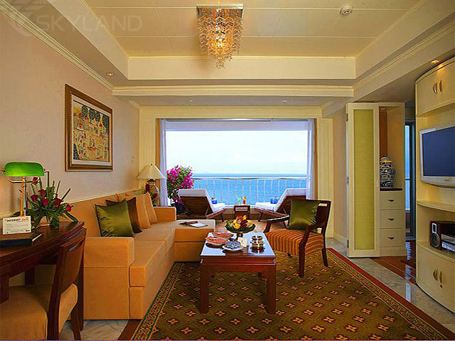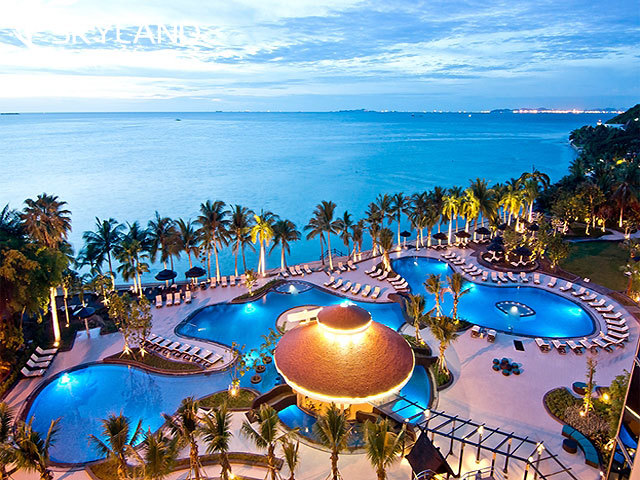 Уникальная конструкция здания, встроенного в склон покрытой тропической зеленью скалы, и эксклюзивный дизайн интерьеров номеров люкс, изящно декорированных тиковым деревом, коврами ручной работы, подушками из тайского шелка и классическим золотым орнаментом, и роскошного фойе отеля, а также благородная атмосфера изысканности и изящества, гармонично сочетающая в себе традиции и современность, влекут сюда ценителей отдыха класса люкс со всего мира. Наслаждайтесь тишиной и покоем, любуясь потрясающими видами на Сиамский залив в минутной близости от центра Паттайи и живописного побережья Джомтьен.