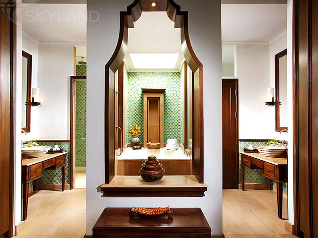 8 Pool Terrace Rooms (57 кв.м) - однокомнатные номера с просторным балконом-солярием с лежаками, спальней с кроватью king-size или с двумя кроватями twin, ванной комнатой и прямым выходом к бассейнам Serenity Pool или Spirituality Lagoon.