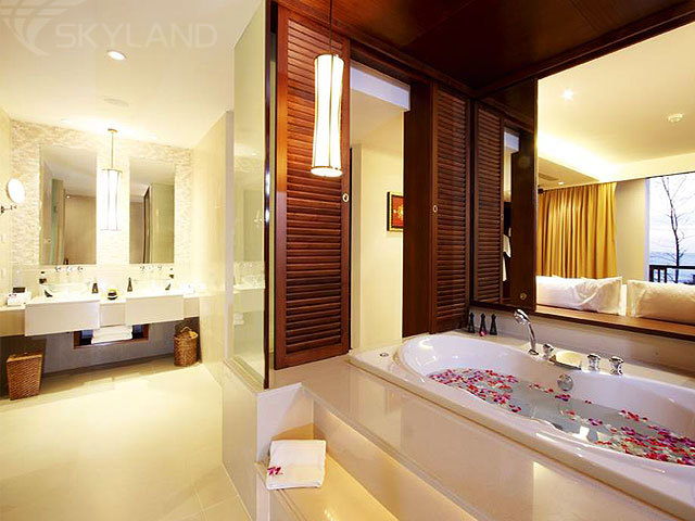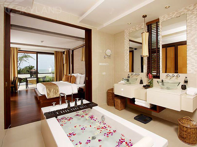 Royal Jacuzzi Penthouse - 3 Bedrooms (360 кв.м) - расположенный на верхнем этаже номер, состоящий из 3 спален с кроватью king-size (в главной – гардеробная комната, ванная комната с ванной и душевой кабиной, балкон с видом на море; во второй и третей - ванная комната с душевой кабиной), гостиной с обеденной зоной, оборудованной кухни, 3 ванных комнат (одна - с ванной и отдельным душем), просторной меблированной террасы с большой открытой джакузи под навесом, зоной отдыха и панорамным видом на Андаманское море. Максимальное размещение – 7 человек.