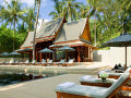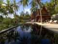 Pool Pavilions (two-bedroom) – виллы в тайском стиле, состоящие из двух, соединенных дорожкой павильонов-спален с кроватью king-size в каждой, гардеробной, просторной ванной комнаты с ванной и душевой кабиной, беседки sala на открытом воздухе, просторной террасы с обеденной зоной и открытого частного бассейна длиной9 метров.