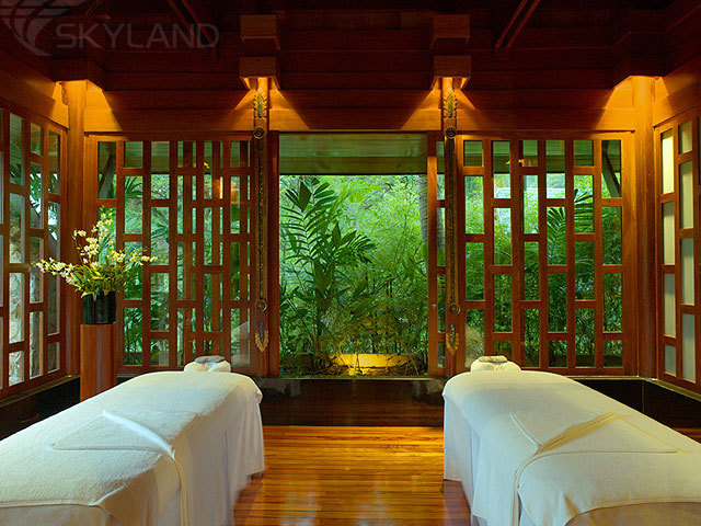 Aman Spa – расположенный в роскошной кокосовой роще спа-центр отеля с сауной, солярием, фитнес-центром, 6 процедурными кабинетами с парной, душем, ванной, гардеробной и беседкой для медитации на открытом воздухе, а также расположенными высоко на холме, открытыми павильонами для массажа, парной, парикмахерской, салоном красоты и террасой с фонтаном, где подаются оздоровительные напитки. Центр предлагает роскошный выбор спа-программ, массажа, целебных ванн, обертываний, пиллингов и других процедур по уходу за кожей лица и тела. В центре проводятся занятия йогой и сеансы медитации.