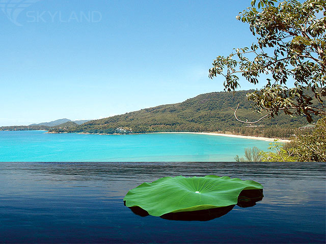 открытый «бескрайний» бассейна площадью 400 кв.м с потрясающим видом на залив Камала и Андаманское море, с расположенными рядом бассейном-джакузи, баром, душевыми и террасой-солярием с комфортабельными шезлонгами;
