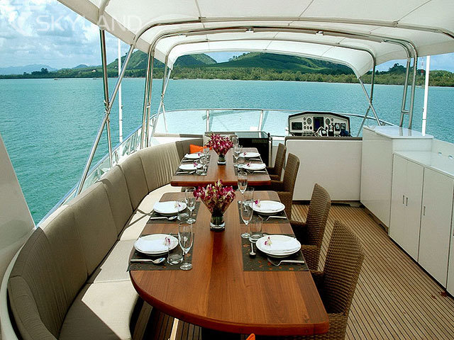 Celebrity - 35-метровая яхта для незабываемых индивидуальных путешествий на близлежащие острова (вместимость: 15 человек для однодневных прогулок, 10 человек для многодневных круизов). Яхта можно смело назвать настоящим отелем класса люкс на воде. К услугам гостей: прогулочная верхняя палуба с открытой зоной для принятия солнечных ванн и крытой зоной со столами и диванами; кондиционируемая, комфортабельная, продуманная до мелочей гостиная на среднем уровне – с обеденной зоной и зоной отдыха; красивые, отделанные ясенем и тканями изысканных цветов каюты, где есть ТВ и аудиосистемы, гардеробы и туалетные столики с зеркалами, просторные душевые комнаты. К услугам гостей – опытный экипаж, высококлассный шеф-повар, внимательный персонал. Количество стюардов рассчитывается, исходя из количества гостей - для того, чтобы предоставить исключительный сервис. От гостей требуется лишь предварительно выбрать любимые блюда из тайского или европейского меню, и свежеприготовленная еда будет подана на одной из палуб или в гостиной.