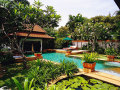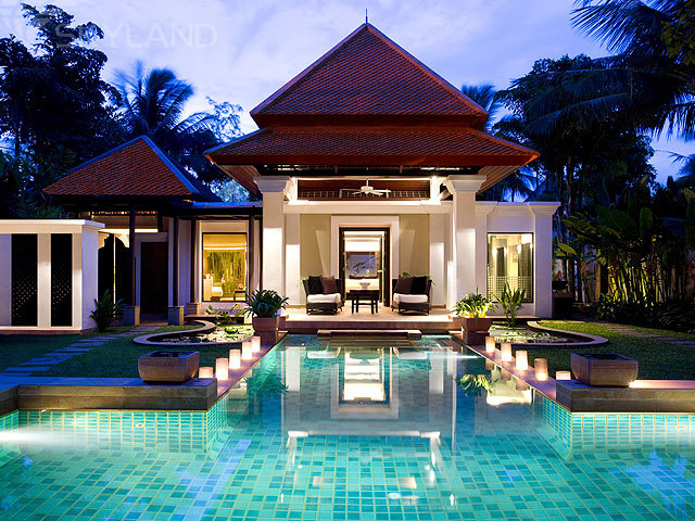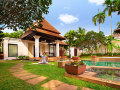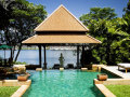 14 Spa Pool Villas (550 кв.м – площадь виллы и открытая зона) – роскошные спа-виллы с видом на сады и лагуну. На каждой вилле: просторная гостиная с большой софой, письменным столом, телевизором и DVD-проигрыватель со стереосистемой; мини-бар с закусками, приготовленными из свежих местных продуктов, свежевыжатыми соками и набором цветочного и травяного чая; большая ванная комната с 2 раковинами, туалетом, ванной и душевой кабиной; ванна и душ под открытым небом; сауна, 2 гардеробные (для него и для нее), в центре виллы, в окружении сада и небольшого поросшего лотосами пруда – элегантный павильон-спальня с кроватью king-size и прозрачными стенами и потолком, драпированным в виде шатра дорогими тканями. А также: частный сад с открытым персональным бассейном (3,5 х11,5 м), джакузи на открытом воздухе, обеденная зона на открытом воздухе, расположенные у «бескрайнего» бассейна терраса-солярий с шезлонгами и зонтами, а также тайский павильон для спа-процедур.