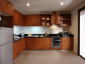 оборудованная кухня (варочная поверхность, духовка, холодильник, тостер, кофеварка и все необходимое для приготовления чая/кофе, кухонная и столовая посуда);