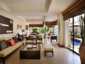 Three-bedroom Pool Villas (457 кв.м) - просторные наполненные светом двухэтажные виллы с просторным собственным бассейном, которые прекрасно подойдут для веселого уикенда или более длительного проживания с семьей или компанией друзей. Виллы состоят из трех спален (в главной — кровать king-size, ванная комната с ванной и душевой кабиной, гардеробная комната и балкон, во второй - 1 кровать queen-size и ванная комната с душевой кабиной, в третьей - 2 кровати Hollywood twin) на втором этаже; просторной гостиной со столовой зоной, полностью оборудованная кухня, гостевой туалет, мини-садик с открытой террасой (солярий, зона отдыха и столовая зона) и павильоном sala, частный бассейн – на первом этаже. Максимальное размещение - 9 человек.