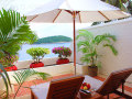18 Ocean Front Deluxe Rooms (общая площадь – 70 кв.м) – элегантные и комфортабельные расположенные на 3, 4, 5 и 6 этажах однокомнатные номера с видом на мыс, залив и море, состоящие из спальни с роскошной кроватью king-size, ванной комнаты, просторного балкона (30 кв.м) с лежаками, кушеткой, креслами и столиком.