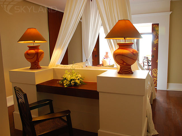 3 Ocean Front Royal Suites – расположенные на 5, 6, и 7 этажах обставленные изящной мебелью и декорированные тайскими шелками номера с одной или 2 спальнями с роскошной кроватью king-size под пологом на 4 столбах (общая площадь 168 кв.м и 244 кв.м соответственно) и эксклюзивным видом на залив. В номерах также: просторная отдельная гостиная, ванная комната и просторный балкон.