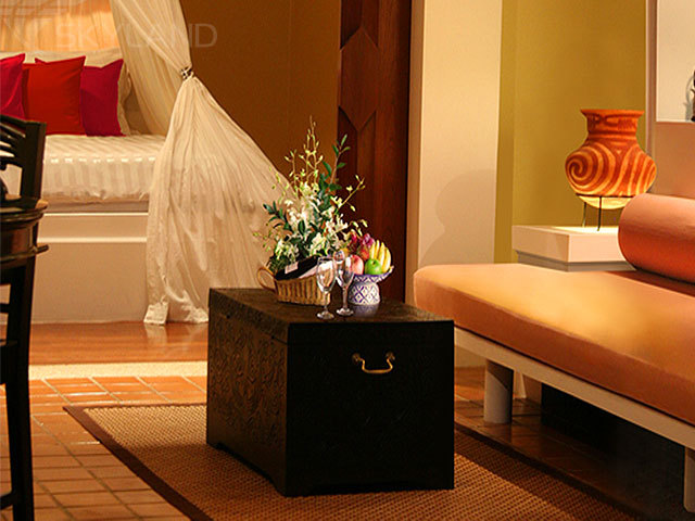 16 Ocean Front Junior Suites (общая площадь – 72 кв.м) – расположенные на 7 и 8 этажах номера с полами из светлого тика и обитой тайским шелком мебелью, состоящие из спальни с кроватью king-size под пологом, выделенной гостиной зоны, ванной комнаты и балкона (22 кв.м) с прекрасным видом на пляж, мыс и залив. Номера прекрасно подойдут для медового месяца молодоженов.