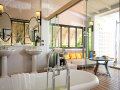 просторная ванная комната открытого плана с глубокой ванной, отдельным душем с функцией «тропический душ», туалет;